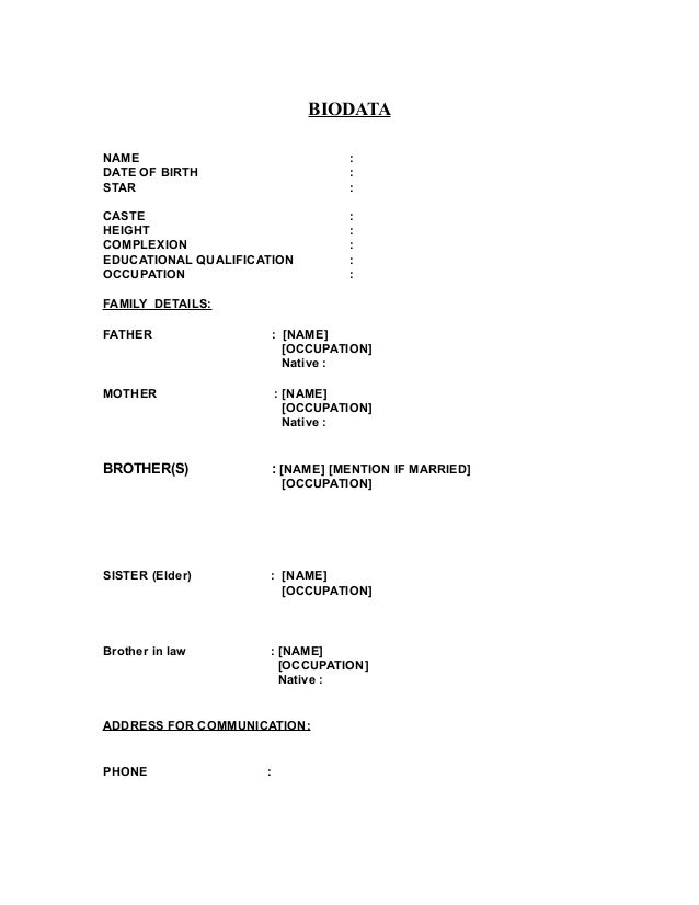 Sample Indian Marriage Biodata Format Made With Easybiodata Com from image.slidesharecdn.com Marriage biodata doc word formate resume matrimonial format from marriage certificate form download gujarat fresh biodata format for marriage with photo zoro blaszczak , source:sevte.com. Special immigrant visa biodata form. Download free printable biodata form samples in pdf, word and excel formats. Don't worry that how to make a biodata form for job, now its available for free download from bottom links. Biodata formats are largely available in different designs, colors, and formats. When making any type of document, the maker should choose the type of. (sample of my biodata formats/template/example/word file/*.doc) In a biodata is a short form for the words biographical data.